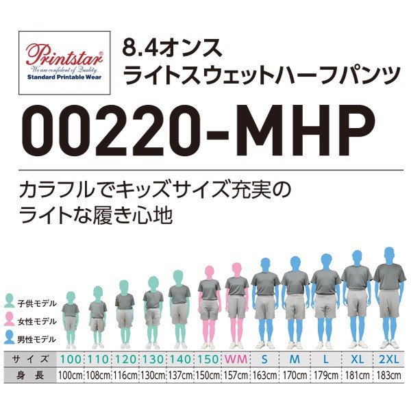 プリントスター 無地 00220-MHP 8.4オンス MHP ライトスウェットハーフパンツ WM〜2XLトムス 220-MHPSALEセール