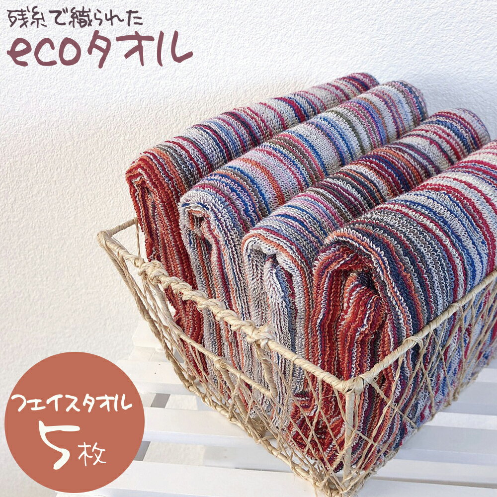 タオル フェイスタオル 残糸 エコタオル 5枚セット かわいい おしゃれ まとめ買い 綿 コットン100% タオル セット販売 北欧 アジアン カラフル 残糸タオル エコ パイル仕立て 人気 残糸を使用したフェイス ランダムカラー 色おまかせ 福袋 バーゲン セール