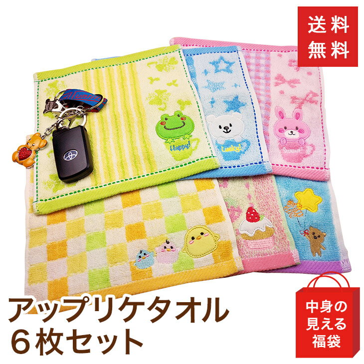 福袋 アップリケミニタオル6枚セット 幼稚園 20cm×20cm 送料無料 2020年