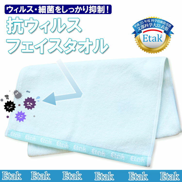 【抗ウィルスフェイスタオル】【メール便送料無料】【ウィルス感染予防】【抗菌】【今治産】【日本製】イータック抗ウィルスハンドタオル感染リスク軽減に高い効果が期待! ウィルス/細菌/Etak/抑制効果/ウォッシュ/手洗い/会社/子供/安心/安全/家庭用タオル/